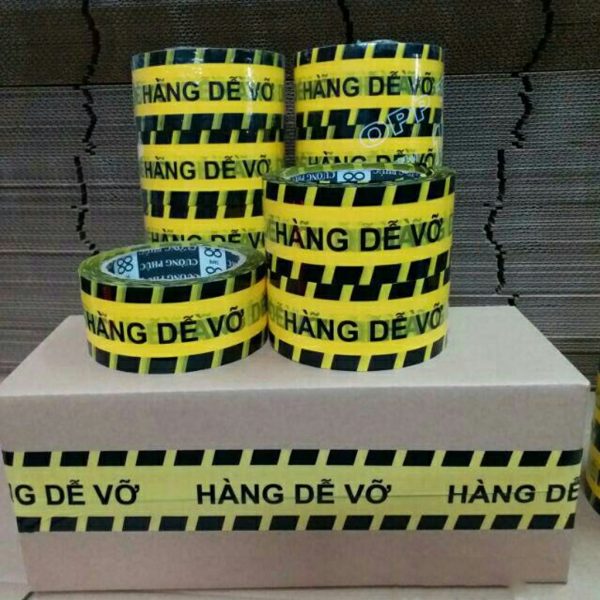 – Công Dụng: Băng Dính Dễ Vỡ được in sẵn dòng chữ “Hàng Dễ Vỡ, Xin Nhẹ Tay” với cả tiếng việt lẫn tiếng anh giúp Cảnh Báo cho đơn vị vận chuyển